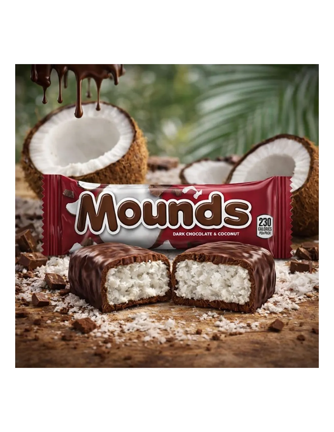 La historia del bar Mounds comenzó en 1919 cuando Peter Halajian vendió sus dulces de puerta en puerta. Así fue como durante la Segunda Guerra Mundial, ante la escasez de azúcar y coco, decidió apostar por una tableta de chocolate con coco . Fue mucho después de que las barras Mounds and Almonds se unieran a Hershey's Company en 1980.