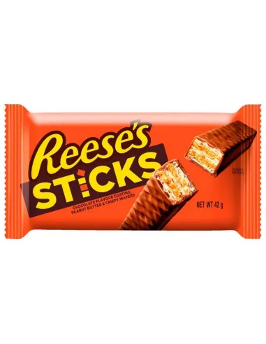 ¡La barra Sticks de la marca Reese's es una oblea de mantequilla de maní de Reese's cubierta con chocolate con leche! Es crocante, goloso, te encantará.