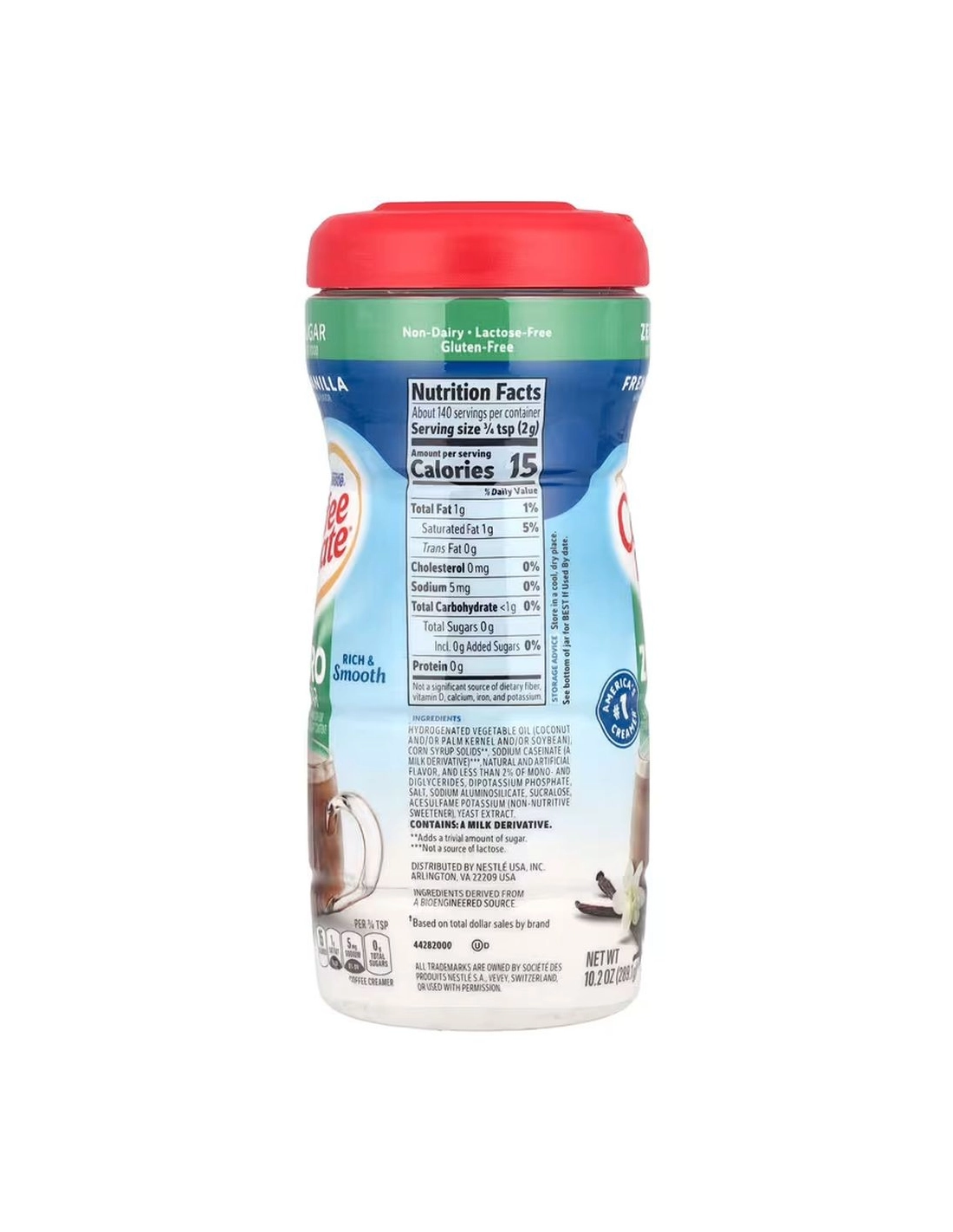 ¡Convierte tu café diario en una experiencia gourmet con Coffee Mate Vainilla Francesa Sin Azúcar ! Disfruta de toda la suavidad y el cautivador aroma de la vainilla francesa, sin una sola gota de azúcar. ¡La bebida matutina esencial en EE. UU., enviada con cuidado por nuestro equipo para que empieces el día con suavidad!