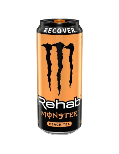 Vitaminizado y típicamente un sabor que llena a todos, te encantará la bebida energética. Rehab Tea Peach de MONSTER ENERGY con sabor a Peach Tea. Su mezcla entre melocotón y té negro es perfecta.