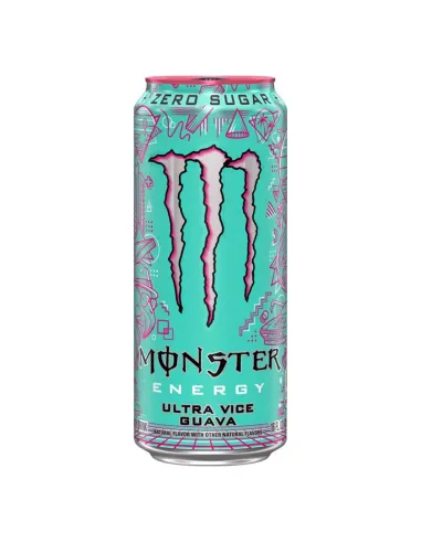 Llena de vitaminas, sin azúcar y deliciosamente sabrosa, descubre la bebida energética Ultra Vice Guayaba de la marca MONSTER ENERGY con un delicioso sabor a guayaba, afrutado y sabroso.