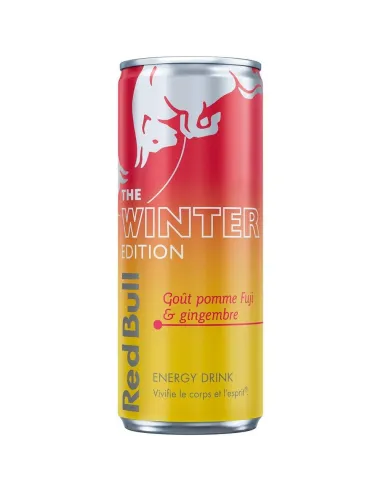 Red Bull Winter Edition Fuji Apple Ginger combina el sabor dulce de la manzana Fuji con el toque picante del jengibre, ¡para un impulso de energía fresco y sorprendente!