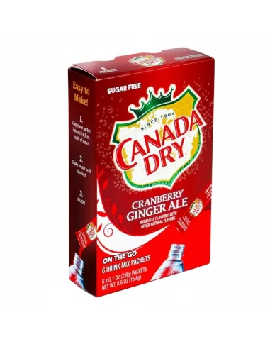 ¡Redescubre el sabor festivo del famoso refresco americano con Canada Dry On The Go Cranberry Ale ! La manera perfecta de mantenerte hidratado: pequeños sobres de polvo que se disuelven y le dan a tu agua el inconfundible sabor a ginger ale de arándano , ¡todo 100% libre de azúcar !