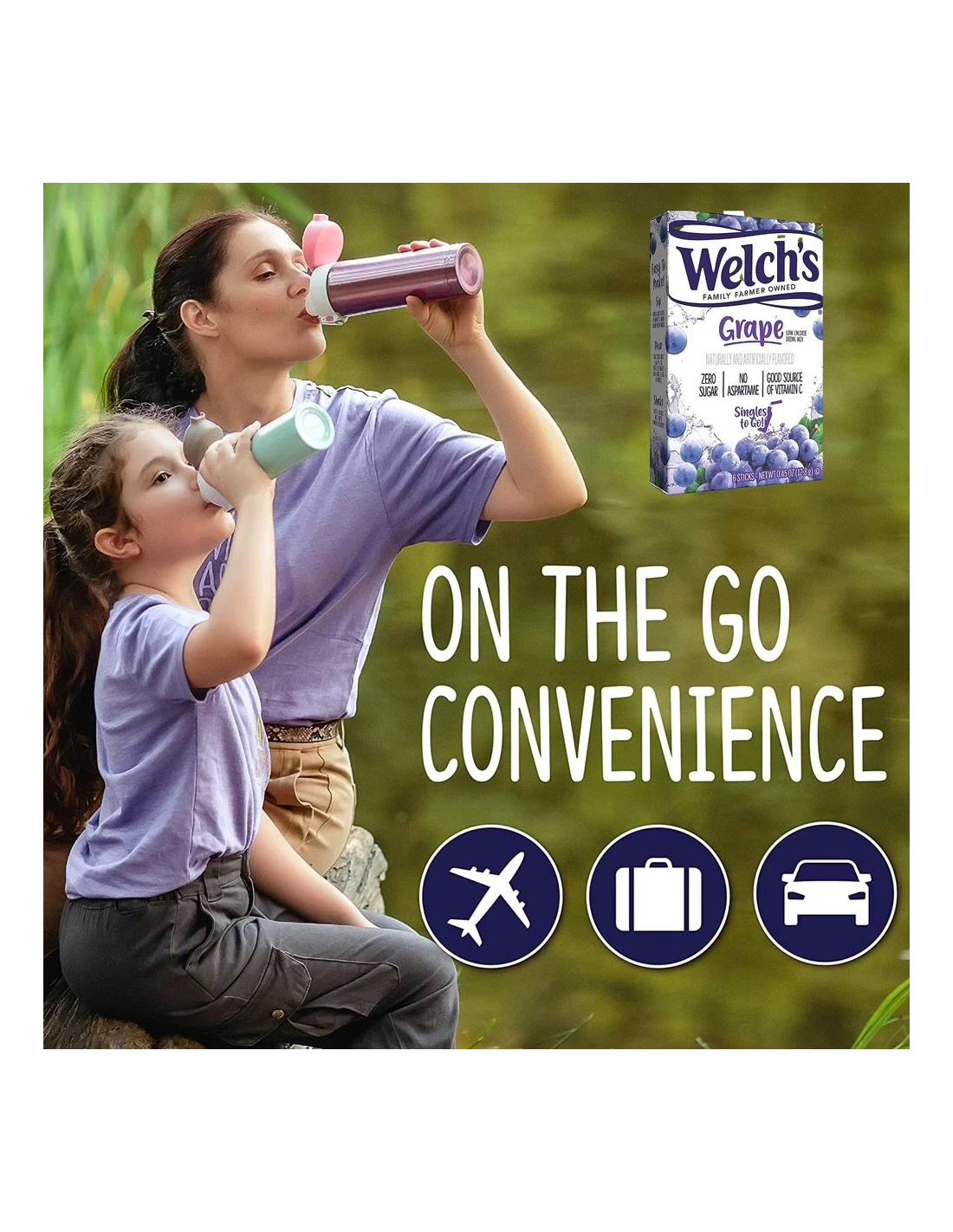 ¿Te apetece un descanso con un sabor intensamente frutal? ¡Descubre el sabor icónico de Estados Unidos con los sobres individuales de uva Welch's Singles To Go ! Estos prácticos sobres te permiten recrear el auténtico y legendario jugo de uva Concord estadounidense en un polvo que se disuelve completamente sin azúcar . El complemento perfecto para llevar contigo y darle color y sabor a tu agua todos los días con un sabor 100% americano, ¡sin remordimientos!