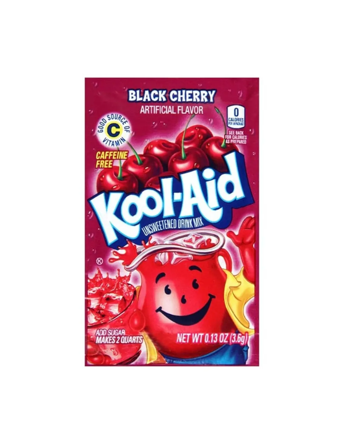 El sabor Black Cherry de Kool-Aid no es más que una mezcla afrutada de cerezas negras . Los paquetes de polvo de Kool-Aid son una fuente de vitamina C y no contienen cafeína. Todos los polvos de Kool-Aid no contienen azúcar . Puedes utilizarlo para diferentes bebidas, tanto como bebida para refrescarte como acompañante de tus cócteles.