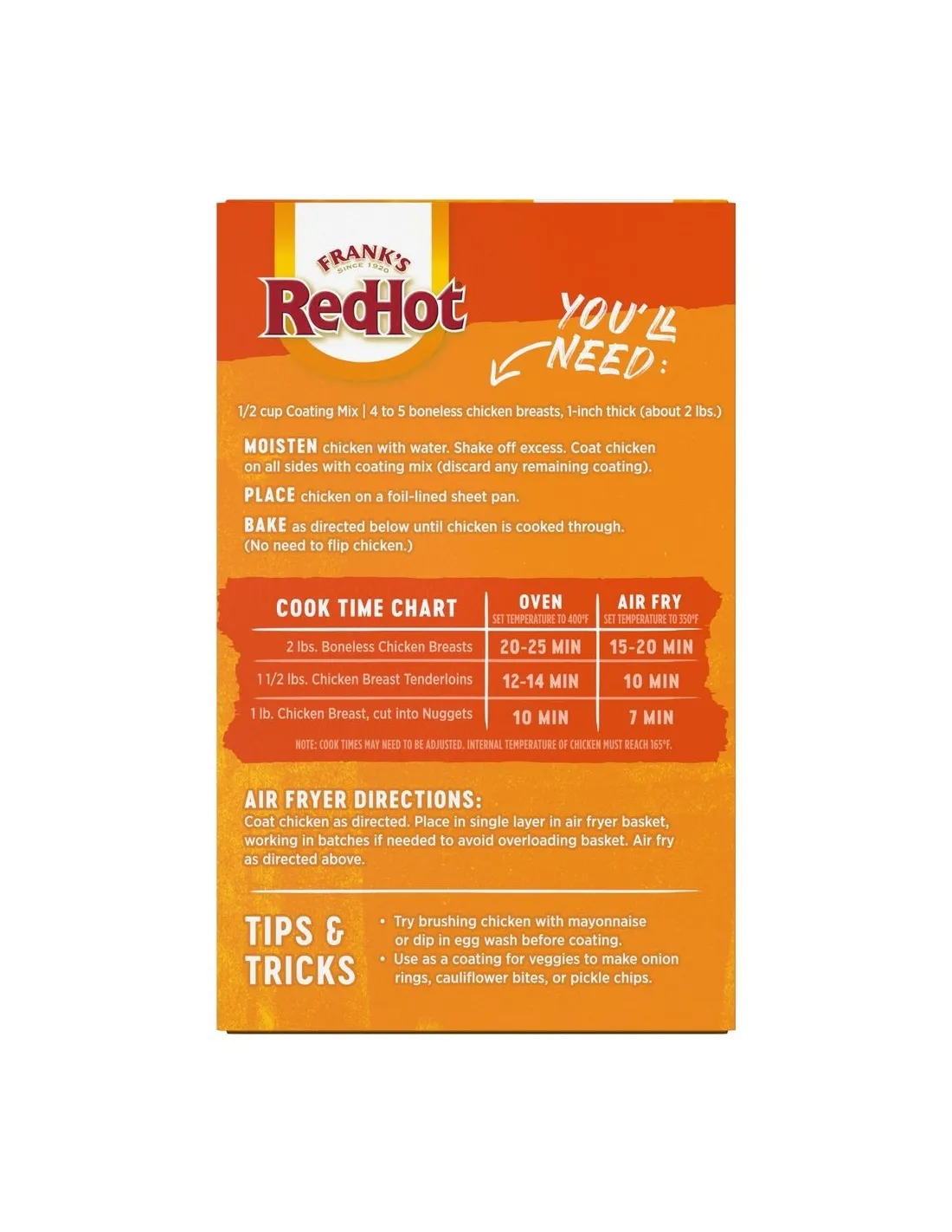 La mezcla para empanizar con sabor a búfalo Frank's RedHot lleva el legendario sabor de la salsa búfalo... ¡directamente al empanizado! Esta mezcla de especias, aromas intensos y pan rallado fino te permite preparar alitas crujientes , tiras de pollo o incluso verduras a la parrilla con un irresistible sabor a búfalo, sin tener que sumergirlas en salsa.