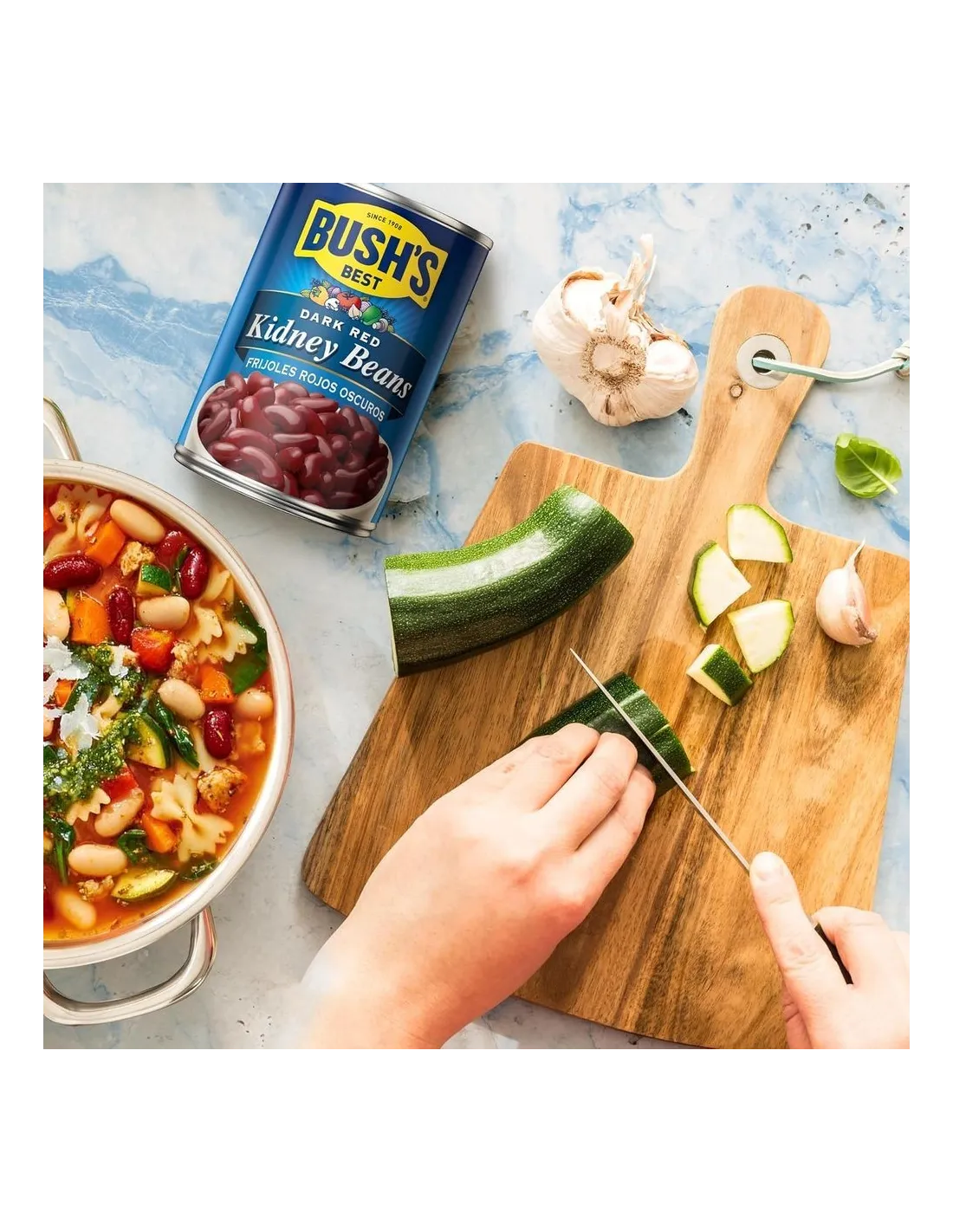 Acerca de la marca Bush's Best : Fundada en 1908 en Tennessee , Bush's Best es la marca líder de frijoles enlatados en Estados Unidos . Esta empresa familiar, que sigue siendo propiedad de la familia Bush después de más de un siglo, es sinónimo de calidad y tradición. Los frijoles rojos oscuros son un clásico de la línea, preferidos por los puristas del chili por su color intenso , textura firme y un sabor más intenso que aporta profundidad a los guisos estadounidenses más emblemáticos.