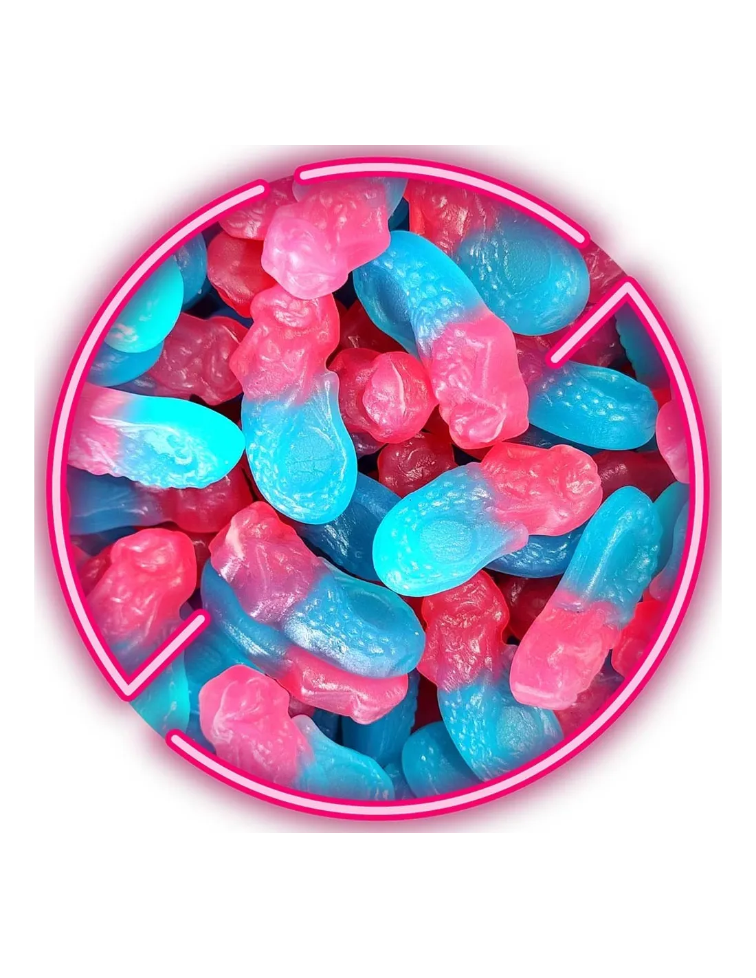 ¿Eres fanático de los dulces a granel? Así que ha llegado el momento de darte un capricho con nuestra bolsa de chuches Kingsway Bubblegum Mermaids de 100g . Te encantarán estos caramelos que tomaron forma de sirenitas lisas de color rosa y azul, con sabor a chicle.