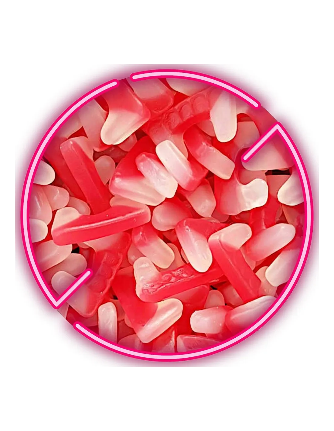 ¿Eres fanático de los dulces a granel? Así que ha llegado el momento de darte un capricho con nuestra bolsa de chuches Kingsway Vegan Dracula Teeth de 100g . Te encantarán estos caramelos que toman la forma de la pequeña dentadura postiza de Drácula, con un delicioso sabor a fresa.