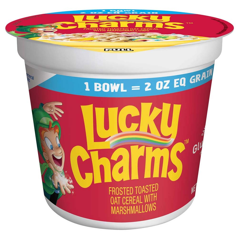 A los niños les encantará comenzar el día con cereales crujientes y crujientes de General Mills Lucky Charms . Es una versión mini taza, solo tienes que abrirla y agregarle la leche :)
