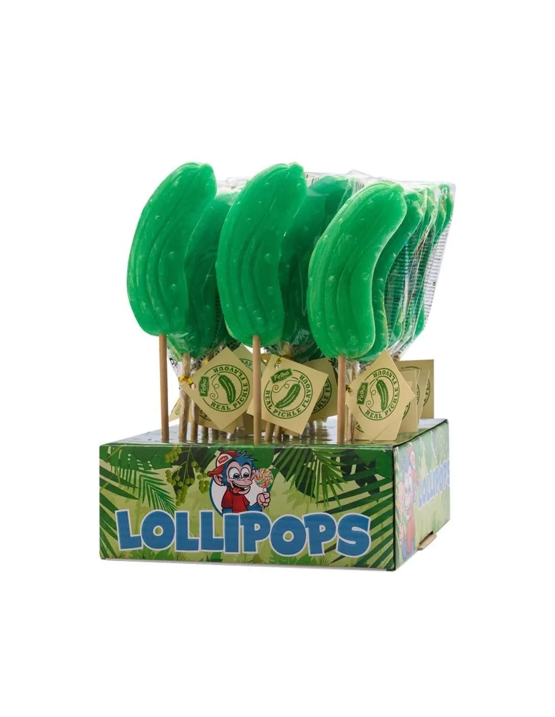 ¿Te gustan las piruletas? Así que date un capricho con esta piruleta Mini Lollipops Pickle . Un sabor real, totalmente increíble con el buen sabor del pepinillo (pepinillo). Mide aproximadamente 11cm.