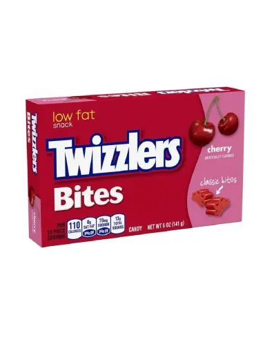 ¡Descubre los dulces American Twizzlers Bites Cherry y dale un giro a tus días! Deliciosos e indulgentes, estos Twizzlers con sabor a cereza son increíbles. Están en un formato llamado "Bocados" que los hace aún más fáciles de comer. El paquete pesa 141 gy contiene solo 110 calorías.