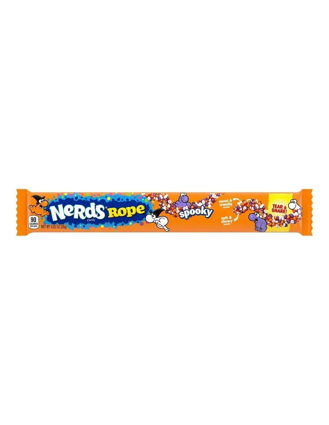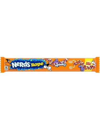Envueltos en un palito de gelatina, descubre los caramelos Nerds Rope Spooky . Elásticos y crujientes, ofrecen una auténtica mezcla de sabores frutales y texturas sorprendentes. Déjate seducir por estas bolitas crujientes que explotarán en tu boca con espeluznantes colores naranja, blanco y morado, especialmente creados para Halloween .