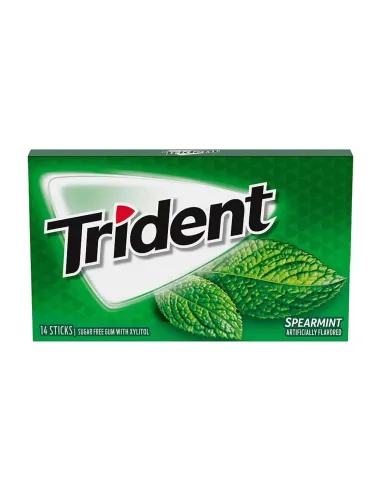 Se encuentran en todas las estaciones de servicio de USA , el chicle de la marca Trident es muy popular entre los americanos. Cada caja contiene 14 palitos con sabor a menta verde . Todos los chicles Trident están elaborados con xilitol , un alcohol de azúcar natural. Cada vez que te lo pones en la boca, el sabor a menta verde explota.