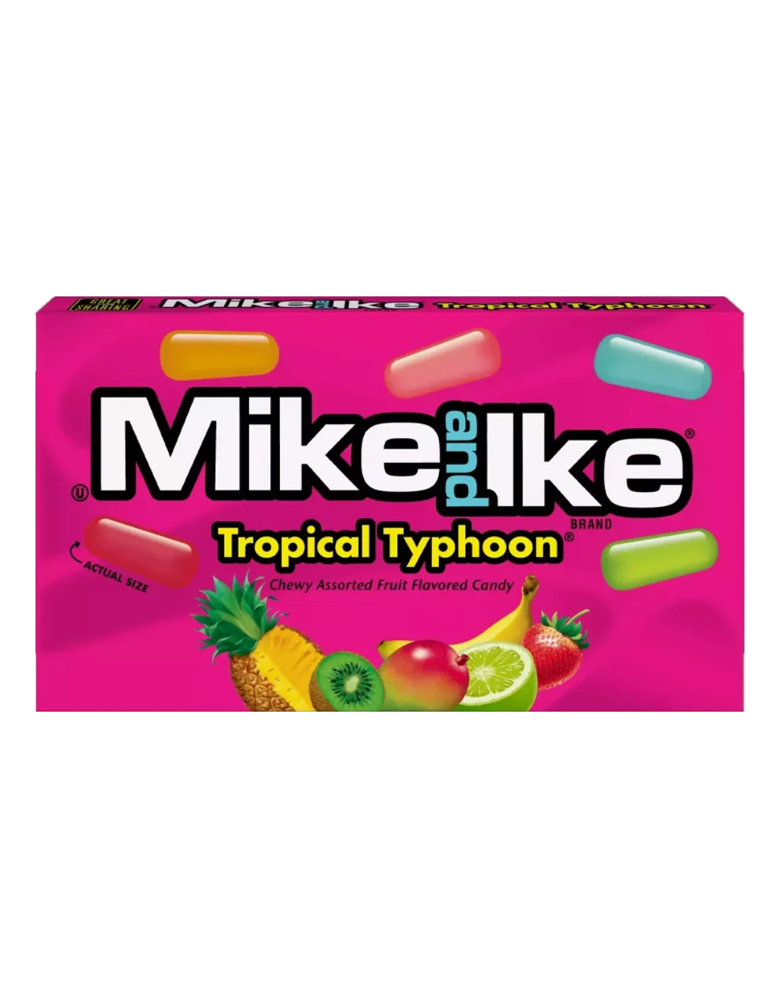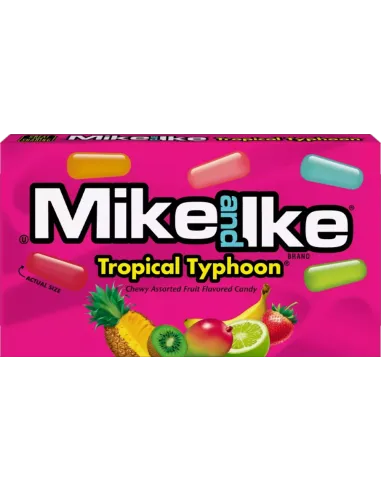 El pack de caramelos Mike e Ike Tropical Typhoon incluye varios sabores de estos caramelos muy populares entre los americanos, es un estándar en USA . En cada sobre de 51g, puedes descubrir los exóticos sabores: Kiwi-Banana, Caribbean Punch, Fresa-Banana, Paradise Punch y Mango . No te quedarás indiferente ante estos dulces. ¡Todos los dulces de la marca Mike e Ike son sin gluten, sin grasa, SIN GLUTEN!