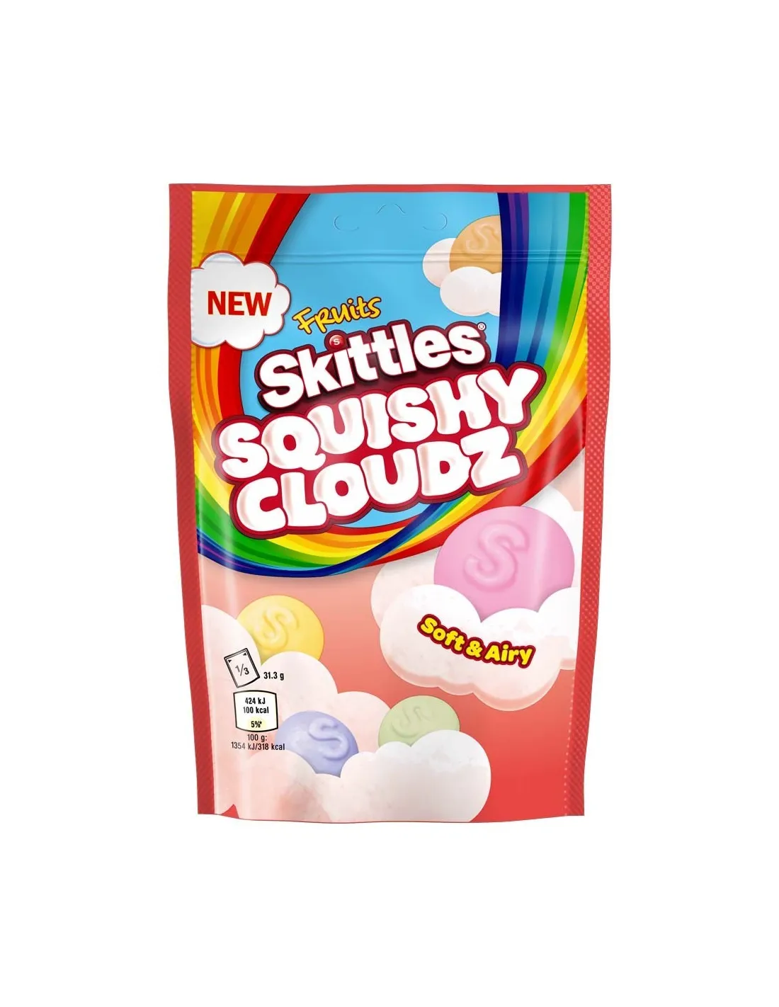 Skittles nos trae una nueva versión de Chewy Gummies , los Skittles Squishy Cloudz Fruits Sweets . Te encantará esta textura suave y el lado afrutado de estos caramelos.