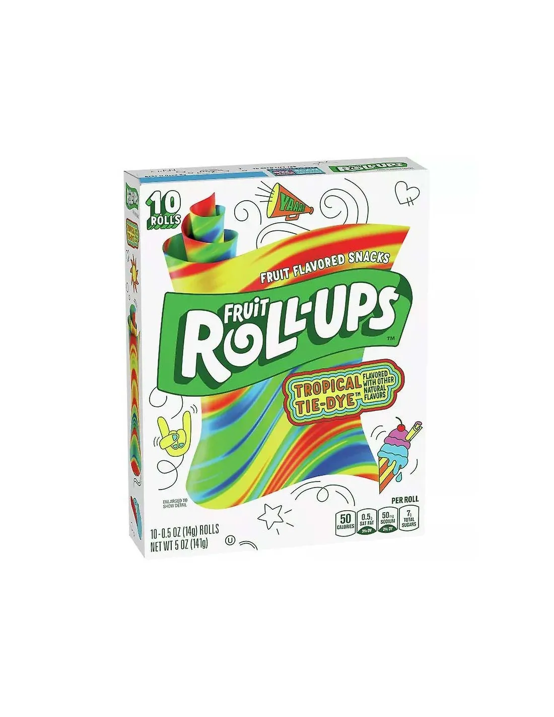 Echa un vistazo a Fruit Roll-Ups Tropical Tie-Dye Candy. Roll-Ups (rollitos de frutas) de la marca Betty Crocker con sabor a frutas tropicales. Cada paquete contiene 8 rollos para compartir con amigos.