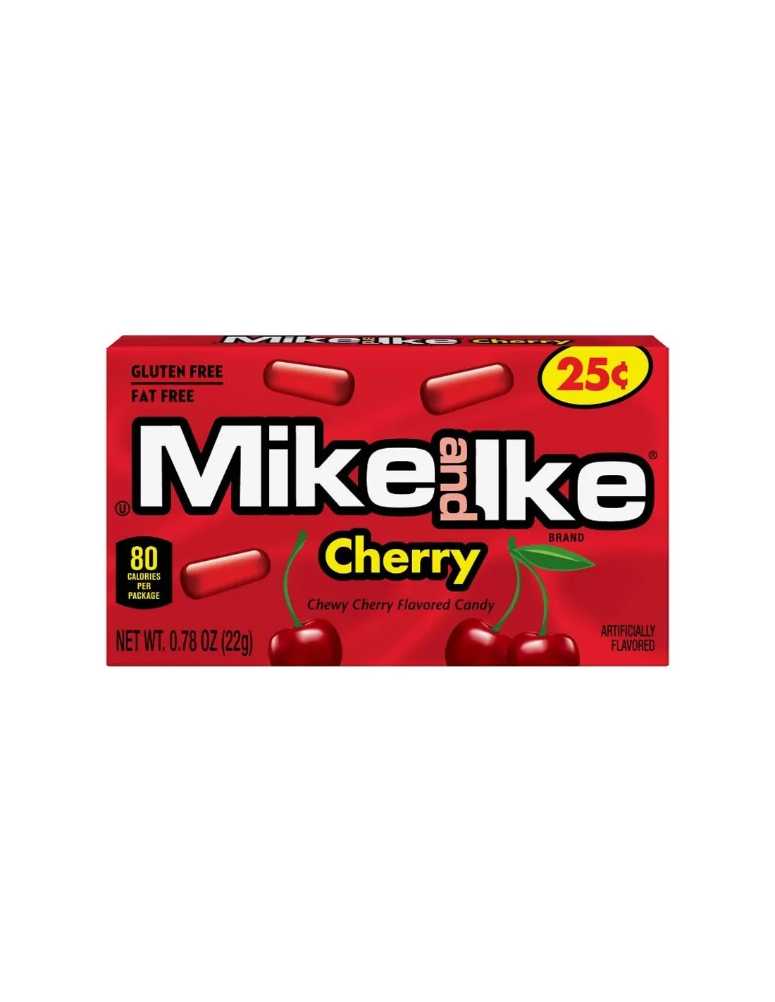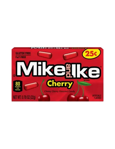La caja de caramelos Mike and Ike Cherry 22g tiene sabor a cereza. No te quedarás indiferente ante estos dulces. ¡Todos los dulces de la marca Mike e Ike son sin gluten, sin grasa, SIN GLUTEN!