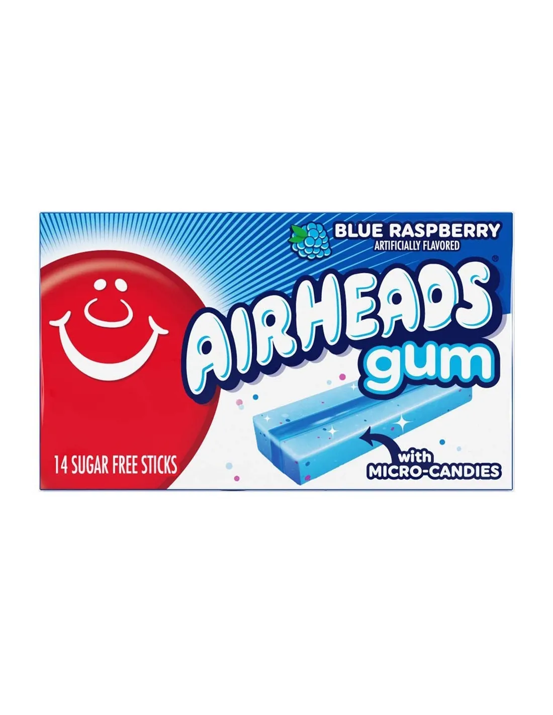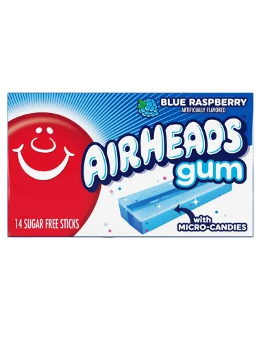 AIRHEADS GUM BLUE RASPBERRY chicles afrutados y picantes con un delicioso sabor a frambuesa azul harán salivar tus papilas gustativas por un momento de puro placer. ¡Los famosos caramelos ácidos ya están disponibles en chicles para que el placer dure!