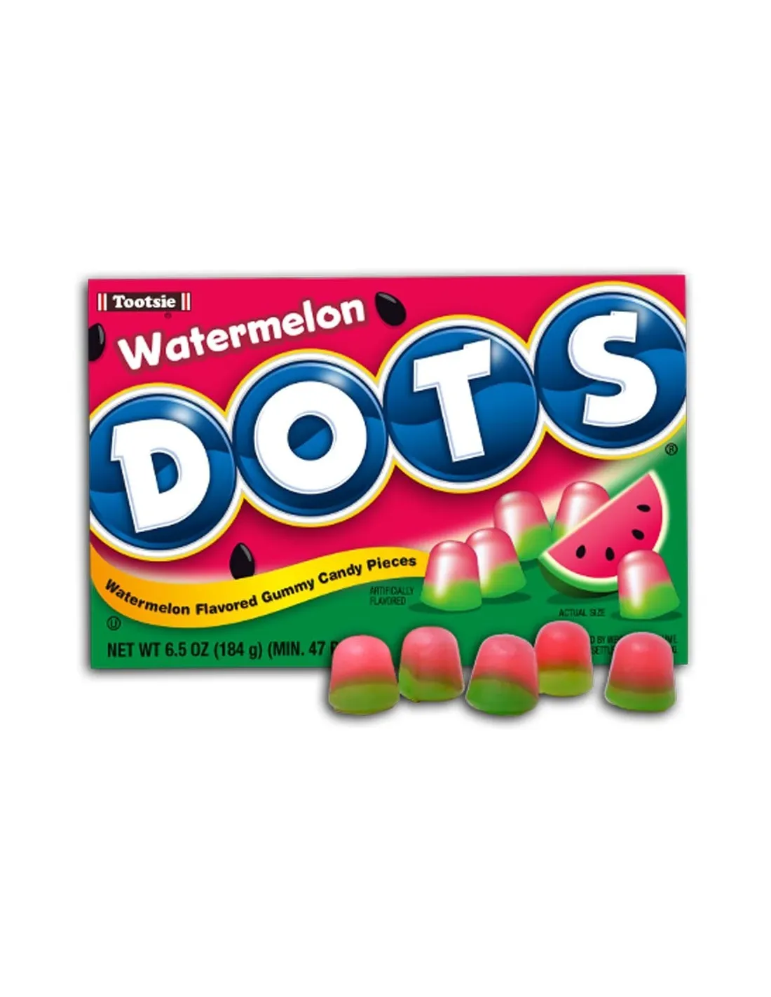 Cada caja de Tropical Dots contiene al menos 15 caramelos con sabor a sandía .