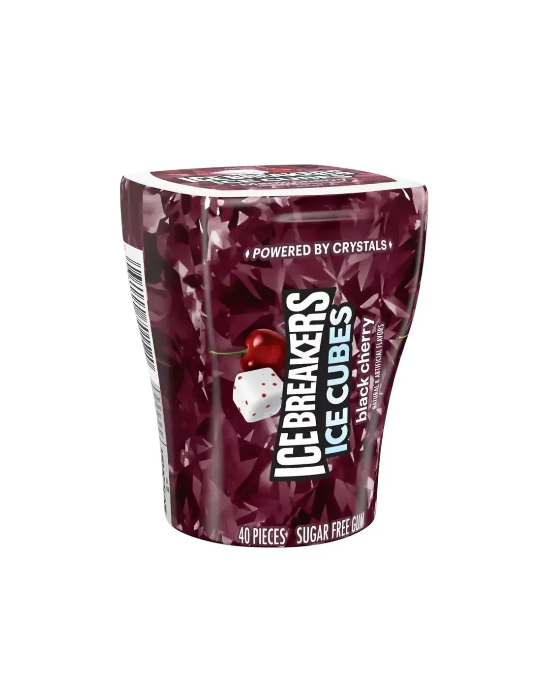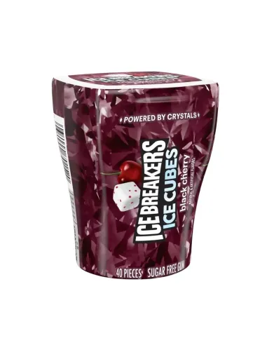 Los chicles Ice Breakers Ice Cubes Black Cherry tienen forma de cubo y un intenso sabor a cereza negra, para un aliento fresco y un placer afrutado. Fabricados en USA .