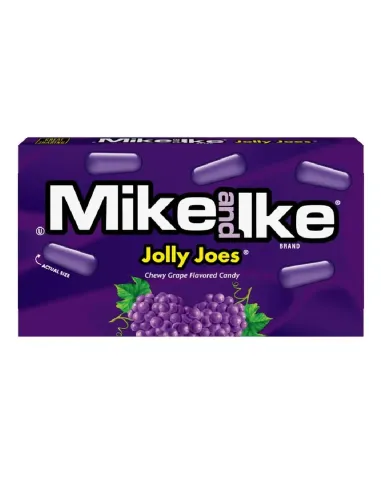 La caja de caramelos Mike and Ike Jolly Joes contiene varios sabores de estos dulces, los favoritos de los estadounidenses y un clásico USA . UU. Cada caja contiene 22 Jolly Joes, incluyendo el sabor a uva . ¡No podrás resistirte a estos caramelos! Todos los Mike and Ike Jolly Joes son sin gluten y sin grasa.