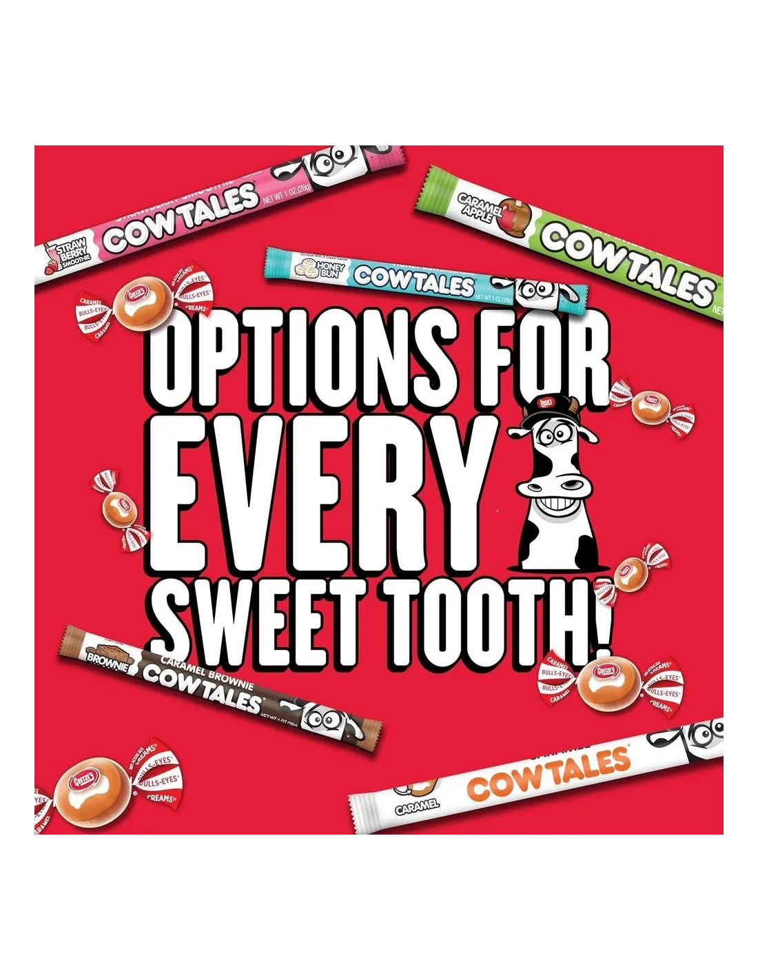 Los Caramel Cow Tales originales de Goetze's Candy Company se introdujeron en el mercado estadounidense en 1984 y se convirtieron rápidamente en un clásico de la confitería estadounidense. Desde entonces, la marca ha ofrecido este clásico en una variedad de sabores originales, incluyendo la popular versión Honey Bun.