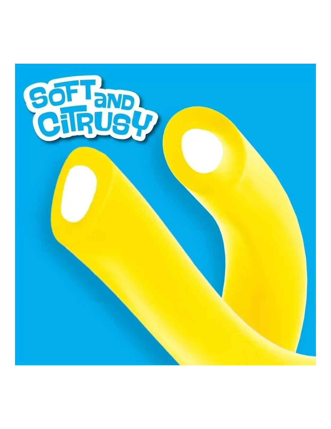 Desde el primer bocado, la suave textura de la cuerda se funde con un centro jugoso y afrutado, revelando un sabor a limón brillante, dulce y deliciosamente intenso. La acidez característica de Lemonhead está presente, pero suavizada por la forma de la cuerda, que le da una textura masticable y una masticación satisfactoria. Es la combinación perfecta para quienes disfrutan de los dulces ácidos sin que sean demasiado intensos.