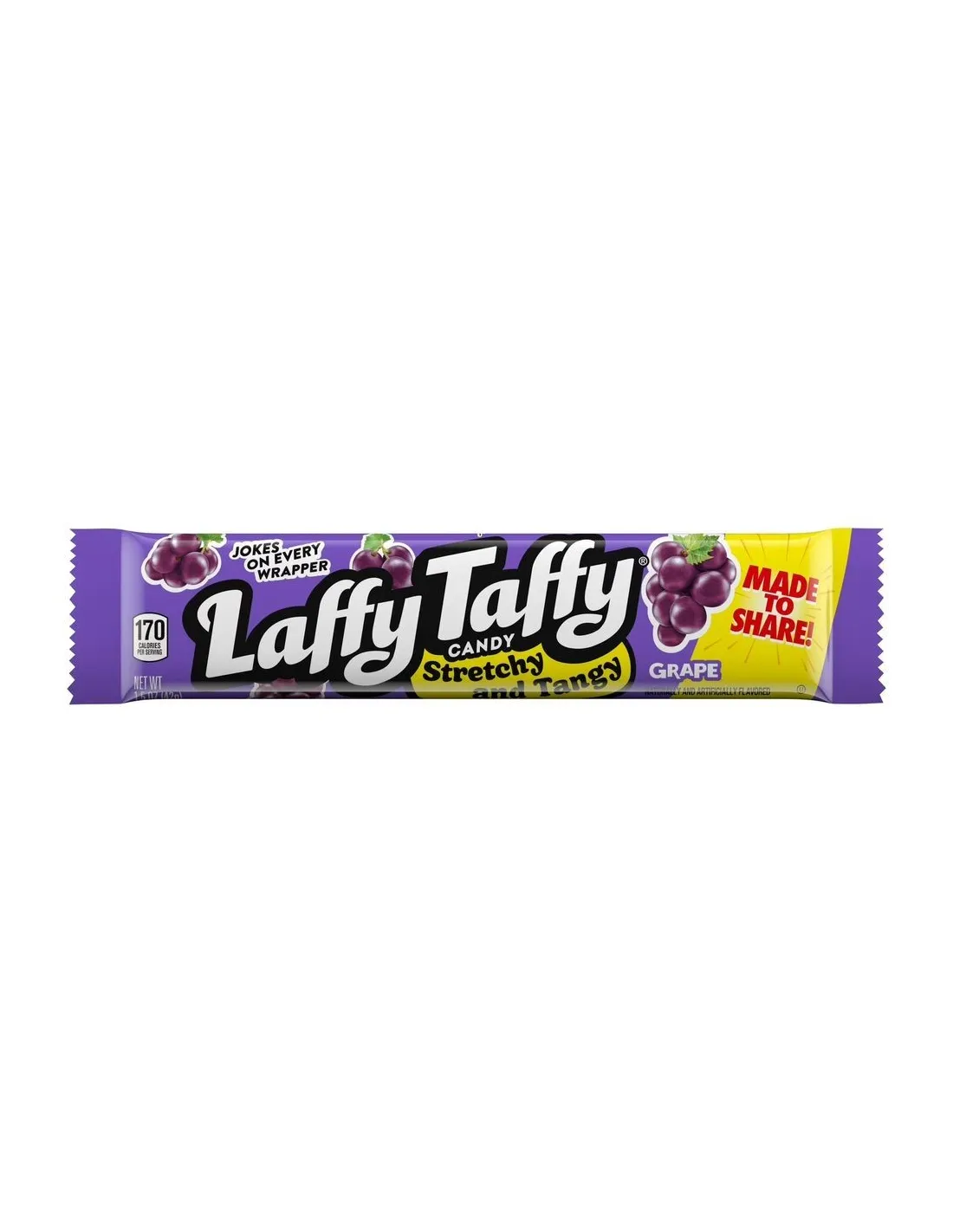 Importados directamente de EE. UU., los caramelos de uva Laffy Taffy son perfectos para un capricho , un momento divertido, una velada con amigos o para completar una colorida barra de dulces . Como siempre, cada paquete contiene un pequeño chiste impreso , un auténtico toque de humor característico de la marca Laffy Taffy, que seguro alegrará a grandes y pequeños.