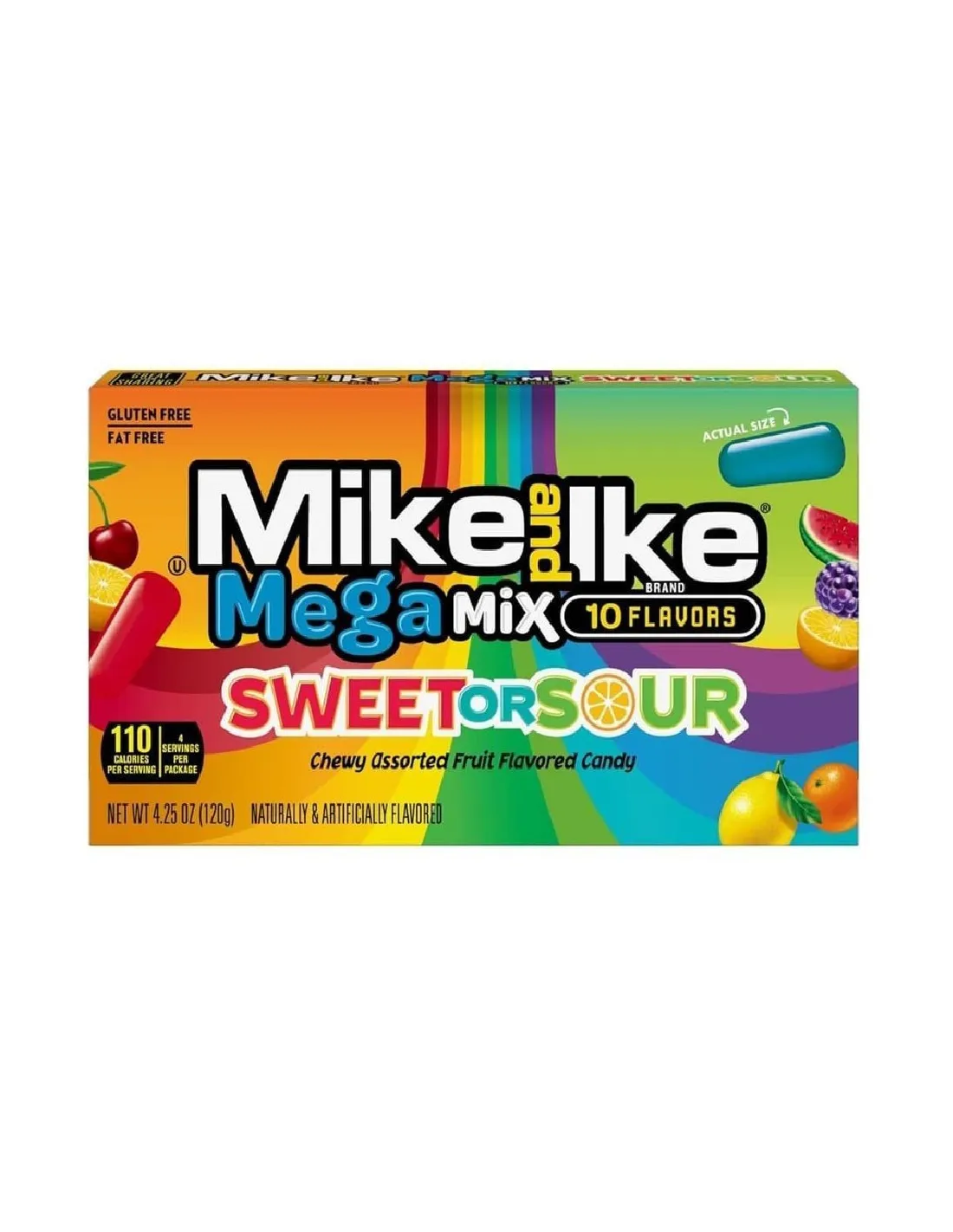 Mike and Ike Mega Mix Agridulce 120 g ofrece una explosiva variedad de caramelos masticables que combinan sabores agridulces en una generosa caja. Una mezcla colorida e intensa, perfecta para los amantes de las sensaciones agridulces al estilo americano. 🍬