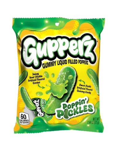 Gupperz Poppin' Pickles recupera el famoso sabor del pepinillo americano en una versión de gominola tan loca como deliciosa.