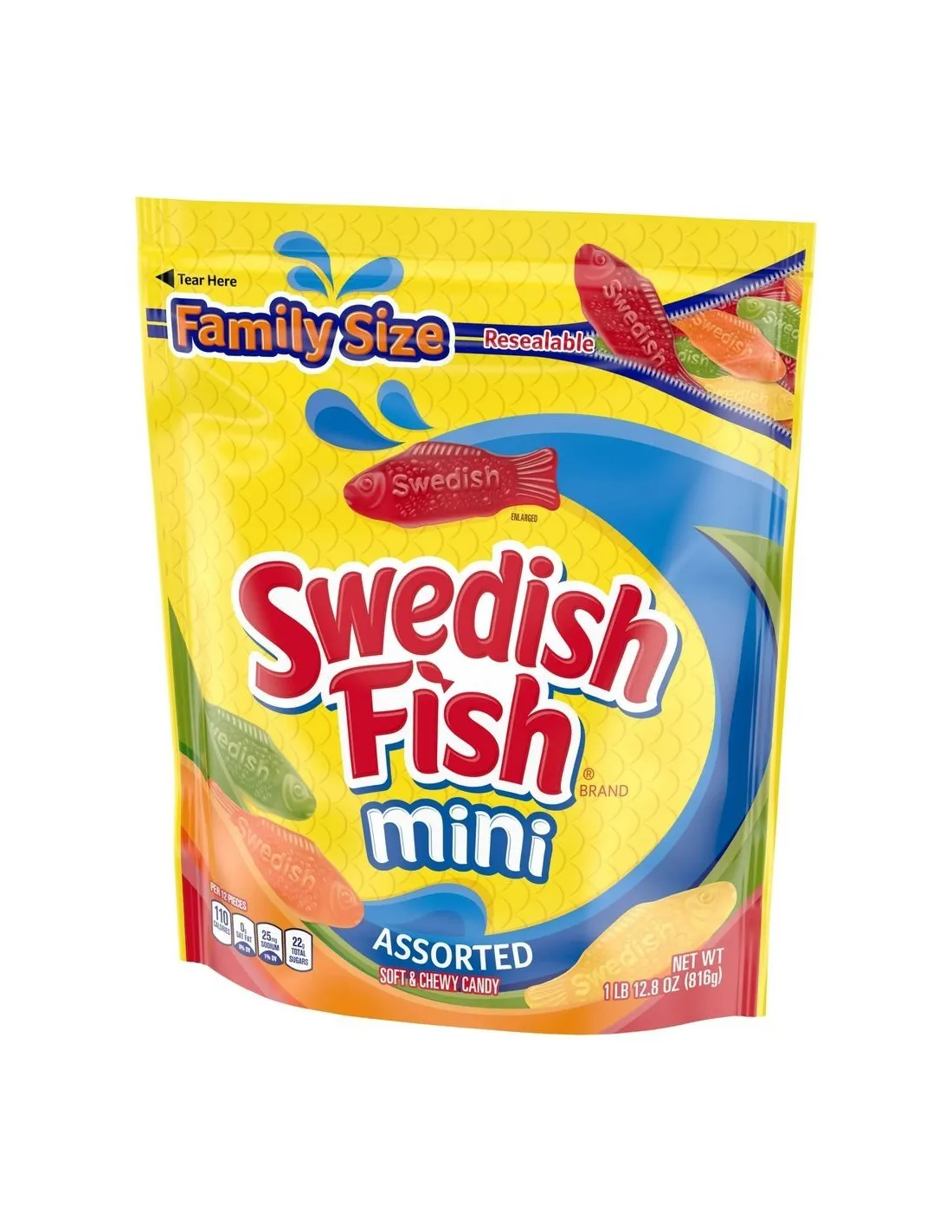 Las gomitas Swedish Fish Mini Surtidas están de vuelta en un tamaño familiar de 816 g para que disfrutes aún más. Suaves, coloridas y deliciosamente afrutadas, estas icónicas gomitas son perfectas para compartir... ¡o para guardarlas todas!