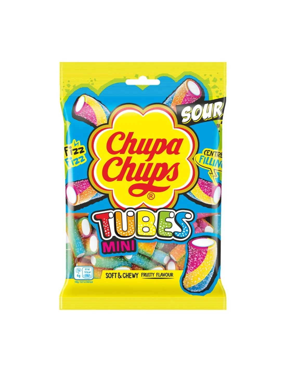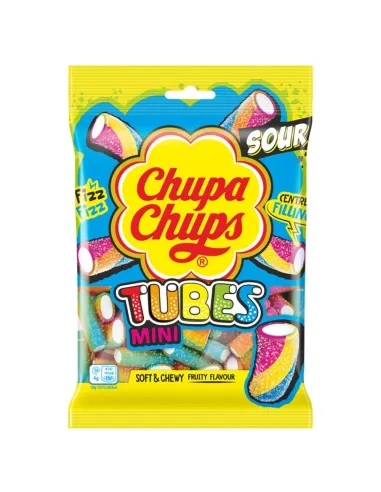 Los Chupa Chups Sour Tubes Mini incorporan el concepto de los caramelos ácidos en formato de tubo, pero en una versión más corta y práctica. Cada tubo tiene un exterior suave y ligeramente ácido y un centro más dulce y afrutado, creando un contraste que encantará a los amantes de los dulces vibrantes. Los sabores son generalmente variados, abarcando varias opciones frutales populares.