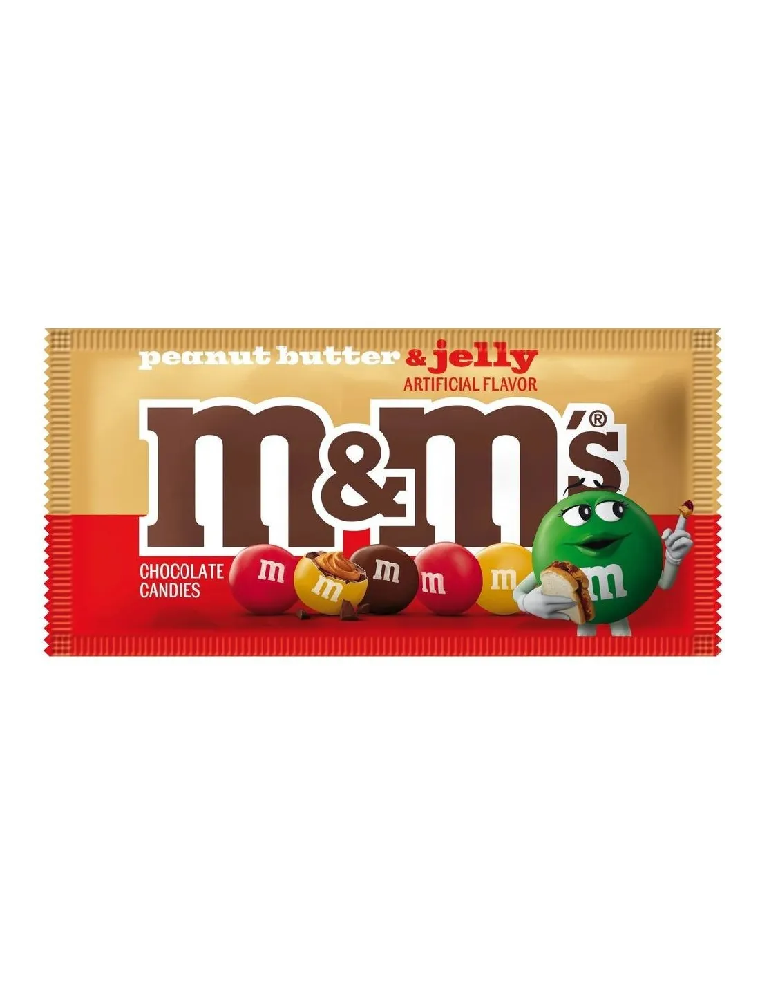 Descubre los chocolates M&M's Peanut Butter & Jelly Share Size en bolsas de 46 g.