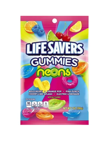 Las gomitas Lifesavers Neones ofrecen una versión colorida y expresiva de las gomitas clásicas de la marca. Cada gomita tiene una textura suave y un marcado sabor afrutado, inspirado en frutas populares. Sus vibrantes colores les dan un atractivo visual dinámico, haciendo que estas gomitas sean atractivas tanto para picar como para compartir.