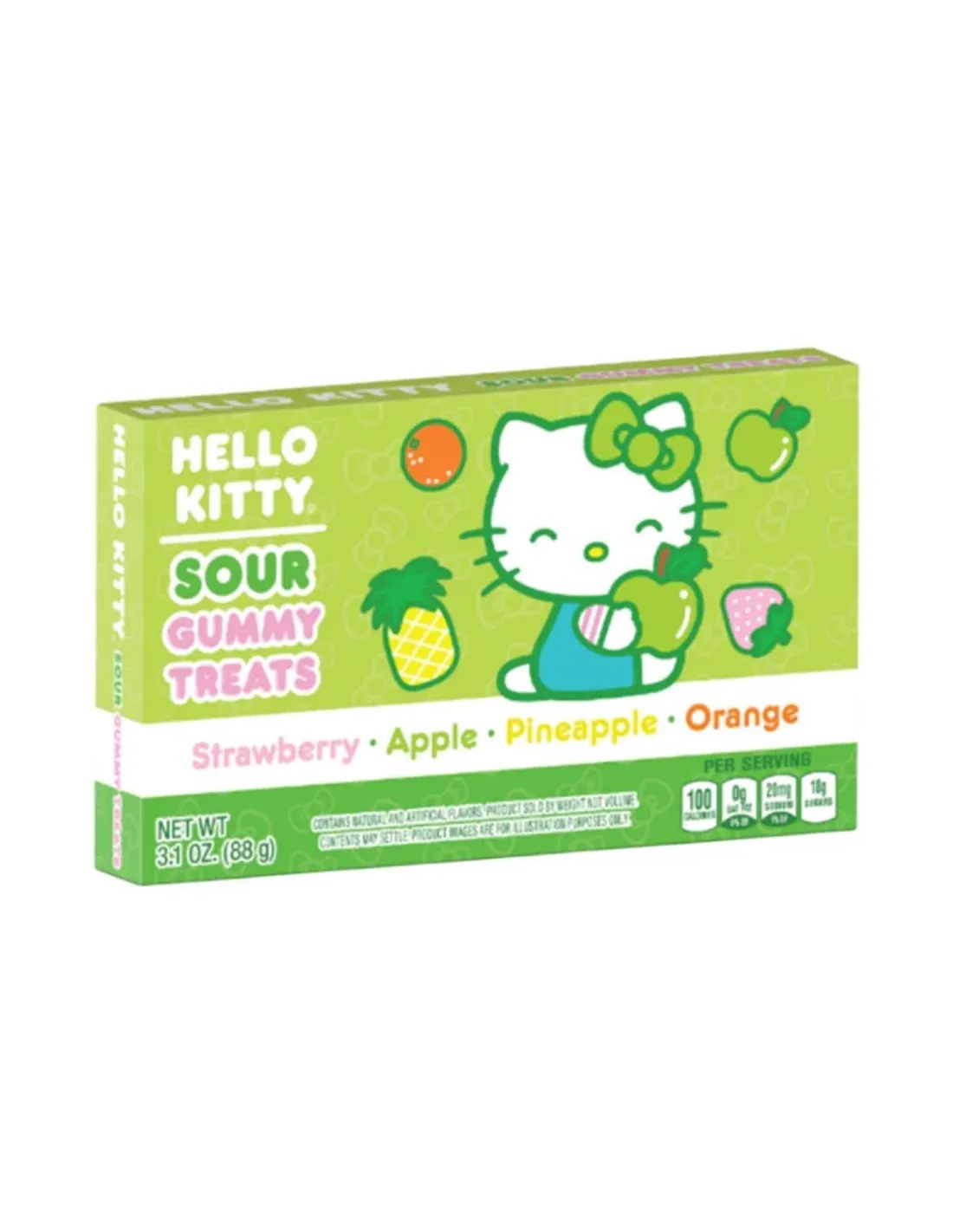 Las Gomitas Ácidas de Hello Kitty son gomitas ácidas con la forma de la famosa cara de Hello Kitty . Cada bolsa contiene cuatro vibrantes sabores frutales: fresa, manzana, piña y naranja, con una cobertura ácida que despierta el paladar. Su textura masticable y su perfecto equilibrio agridulce las convierten en un imprescindible para los amantes de las golosinas ácidas.