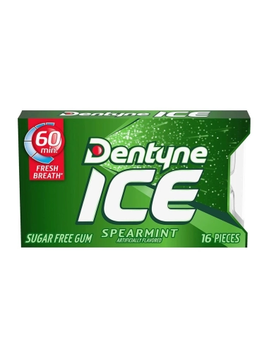 Descubre el chicle Dentyne Ice Spearmint (16 grageas): la dulzura esencial de la hierbabuena americana para una frescura sutil y deliciosa.
