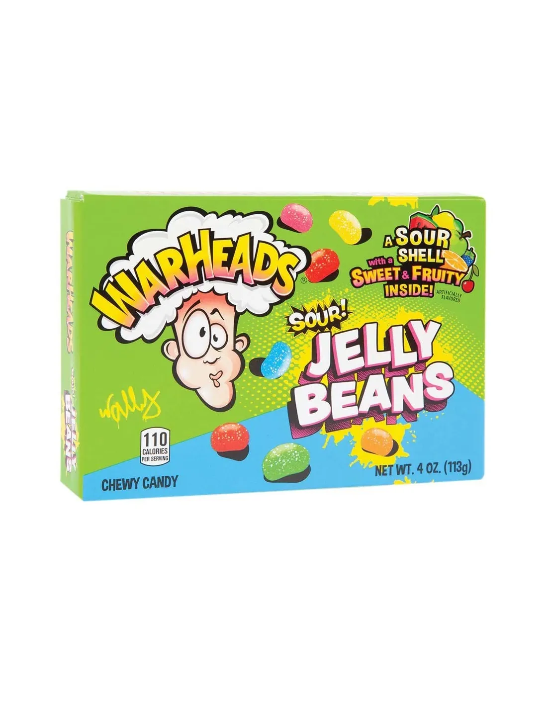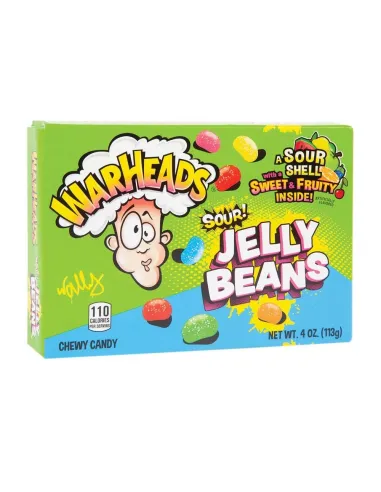 Descubre los dulces Sour Jelly Beans de la marca WARHEADS . ¡Dentro de la bolsa encontrarás pequeños caramelos en forma de frijol con un buen sabor a cereza, frambuesa, manzana verde, limón, sandía y naranja! Deliciosamente perfumados, combinan una extrema acidez con la dulzura de la fruta.
