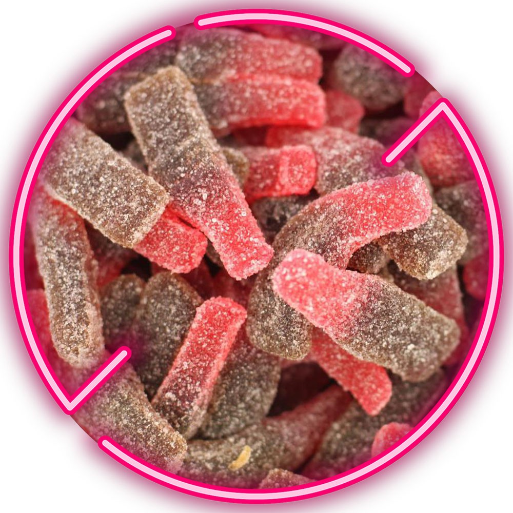 ¿Eres fanático de los dulces a granel? Así que es momento de darte un capricho con nuestra bolsa de caramelos Sour Cherry Cola Bottles . Te encantarán estos caramelos en forma de pequeñas botellas de color verde ligeramente ácido (Sour) con buen sabor a cereza y cola.