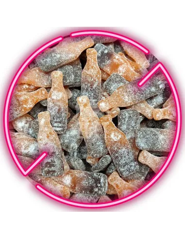 Descubre la bolsa de 100g de caramelos Grahns Black Orange . Pequeñas botellas con sabor a naranja y cola cubiertas con un azúcar ligeramente ácido.
