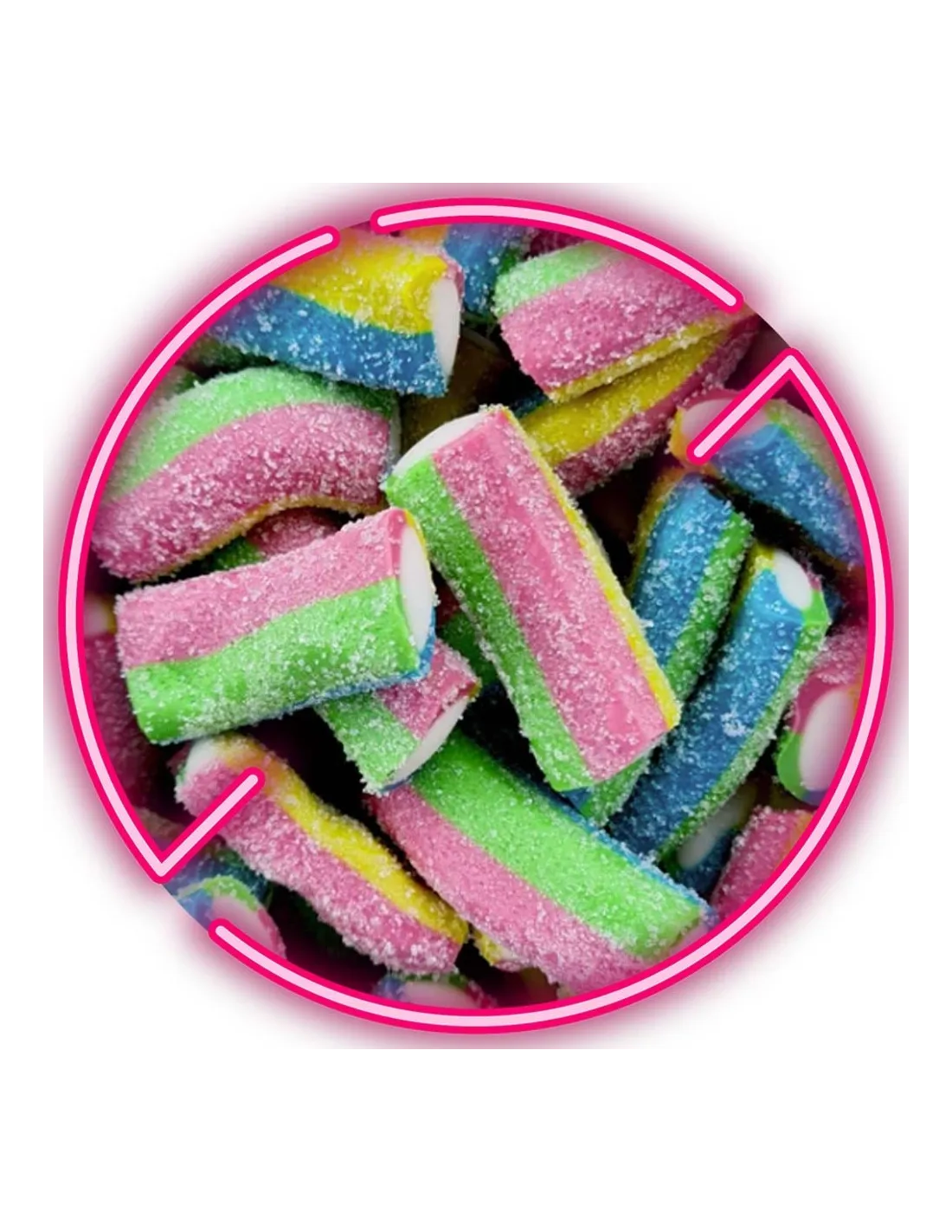 ¿Eres fanático de los dulces a granel? Así que es hora de darte un capricho con nuestra bolsa de caramelos Sour Rainbow XL . Te encantarán estos caramelos con forma de cable y con un buen sabor afrutado y ligeramente ácido. ¡Una versión XL!