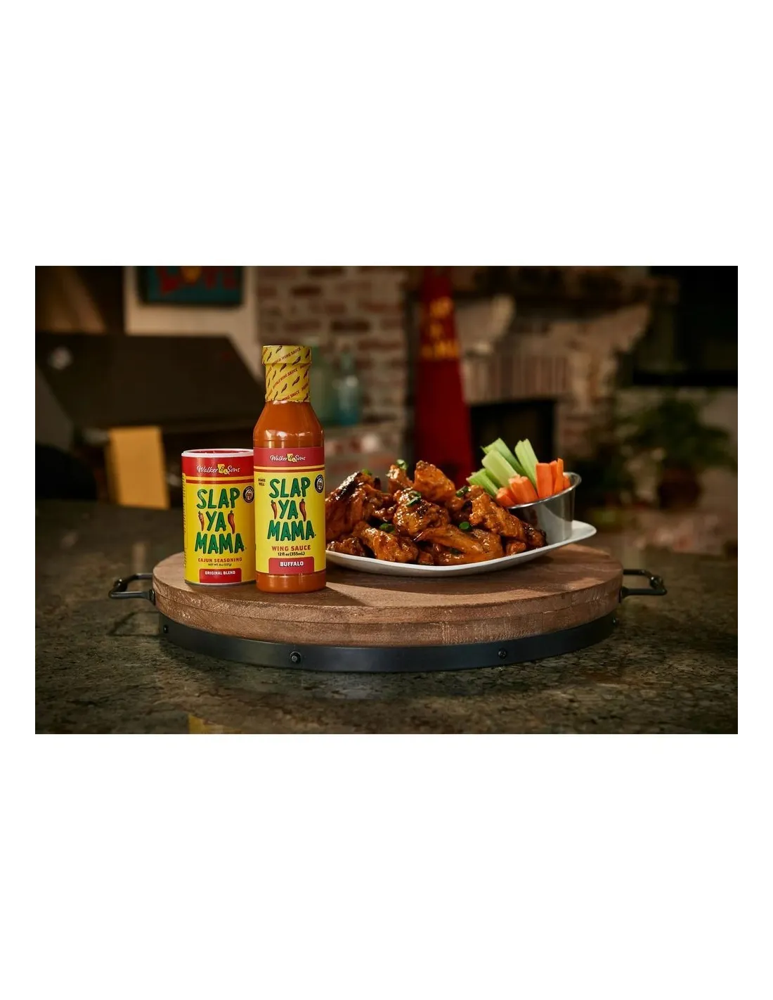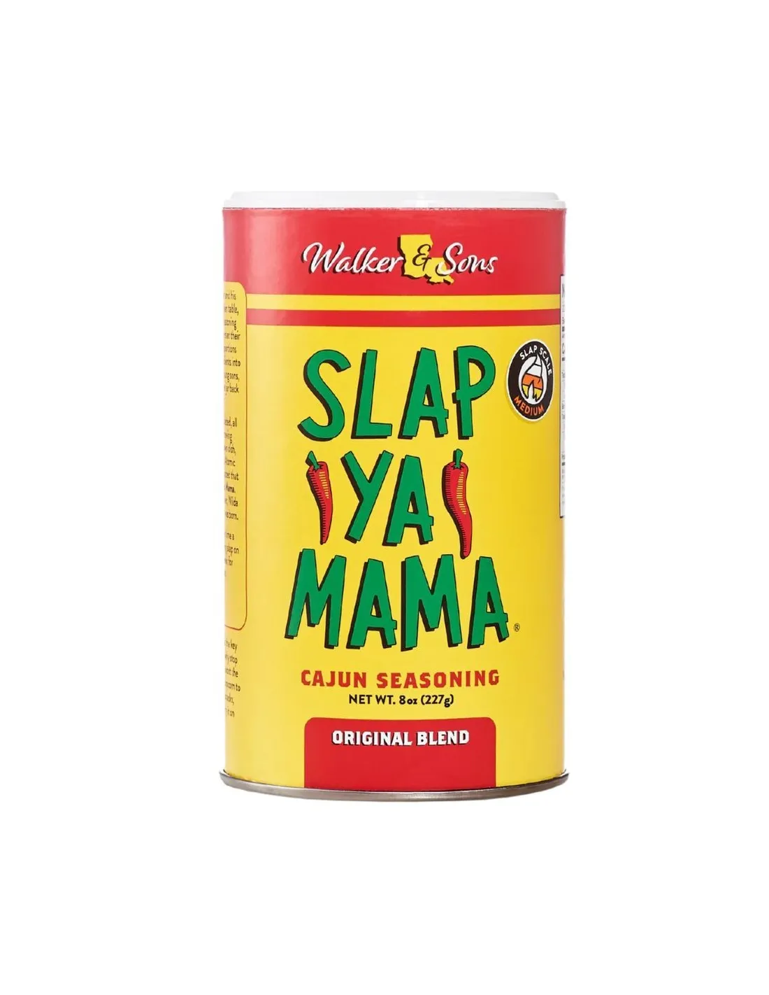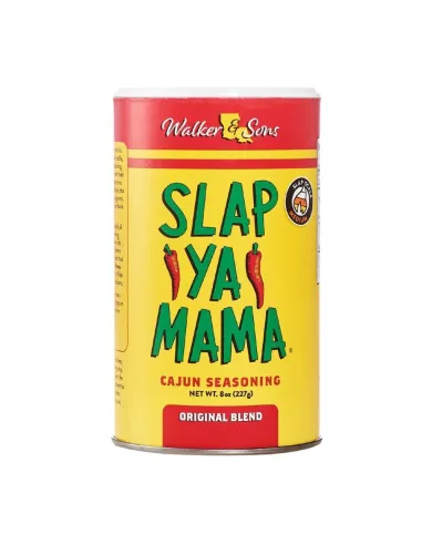 La mezcla original de condimentos cajún Slap Ya Mama, en un formato de 227 g, es el condimento esencial para los amantes de la comida cajún que nunca quieren quedarse sin él. Esta tradicional mezcla de especias cajún combina sal , pimienta de cayena , pimienta negra , ajo y una mezcla secreta de especias transmitida de generación en generación por la familia Walker.