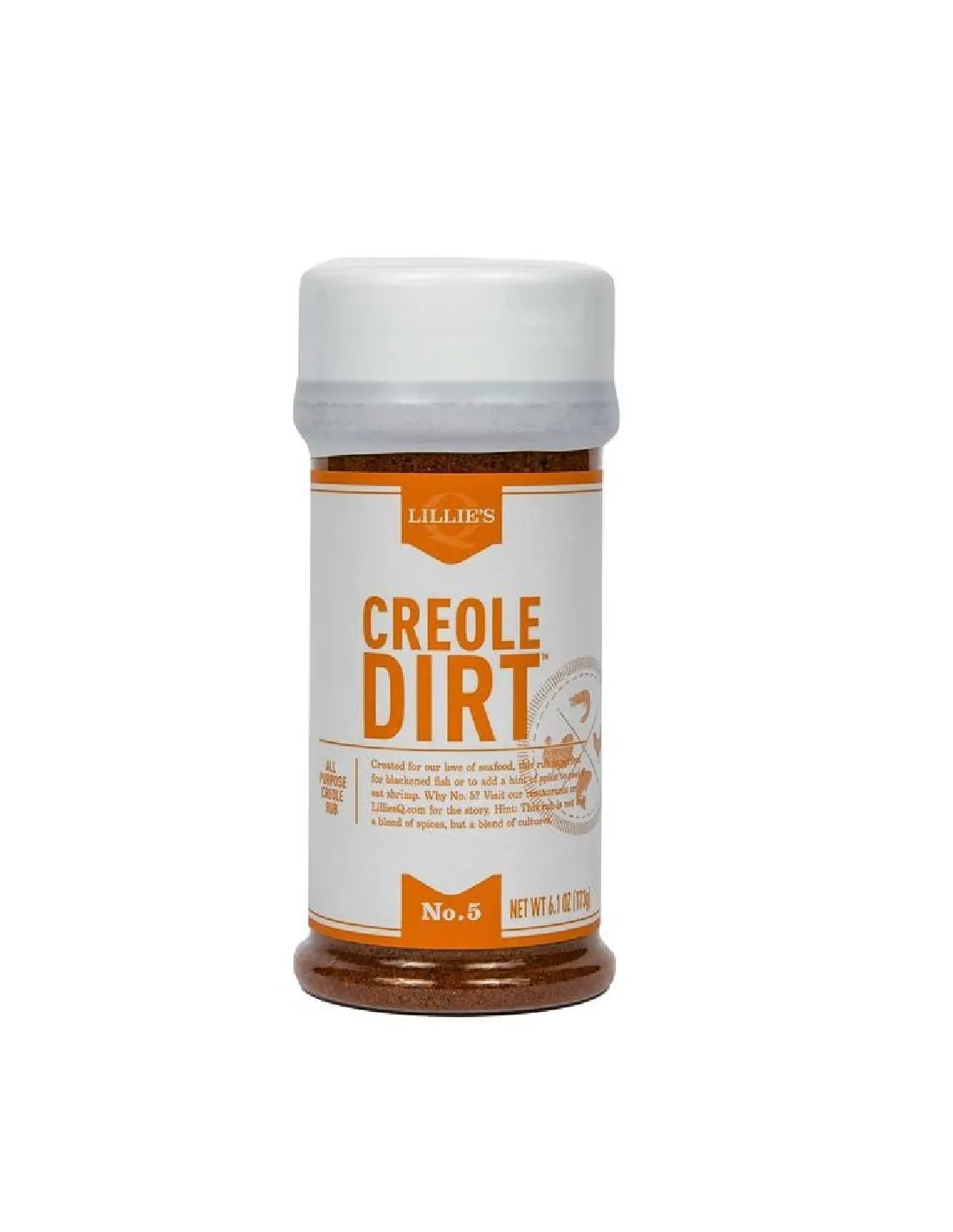 Lillie's Q Creole Dirt es un condimento criollo de Luisiana inspirado en las cinco influencias culturales de Nueva Orleans. Perfecto para pescado , camarones y cangrejos de río ennegrecidos, este condimento aporta los auténticos sabores del pantano a sus mariscos y platos a la parrilla.