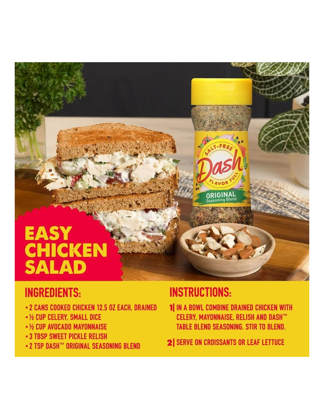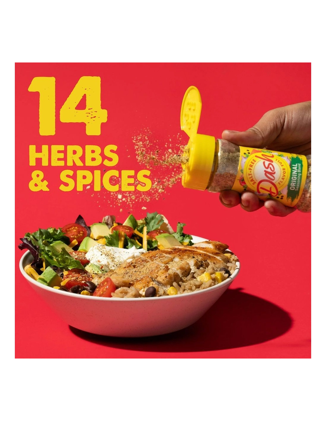 Descubre la mezcla de condimentos original Dash : la famosa mezcla estadounidense de 14 hierbas y especias, 100% libre de sal , diseñada para realzar instantáneamente el sabor de todas tus creaciones culinarias.