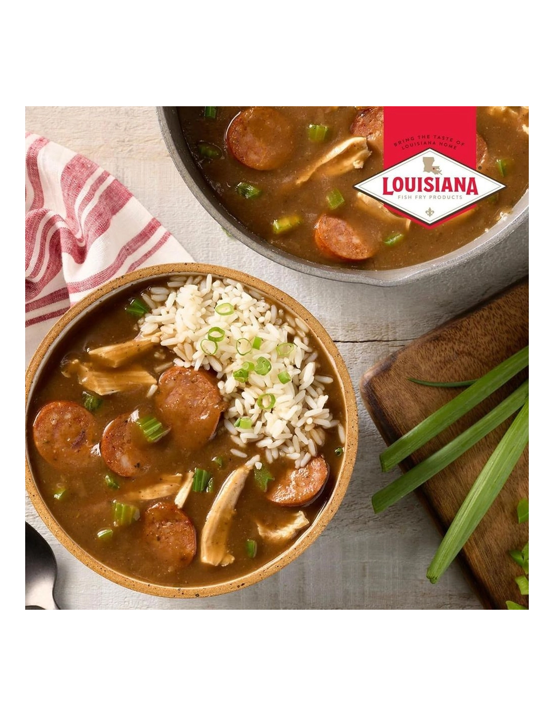 Lleva a toda tu mesa a un viaje al legendario Barrio Francés de Nueva Orleans con la mezcla para gumbo y arroz cajún de la reconocida marca Louisiana Fish Fry Products . Originaria de Baton Rouge, esta marca es una verdadera institución en Estados Unidos para todos los amantes de la cocina cajún.