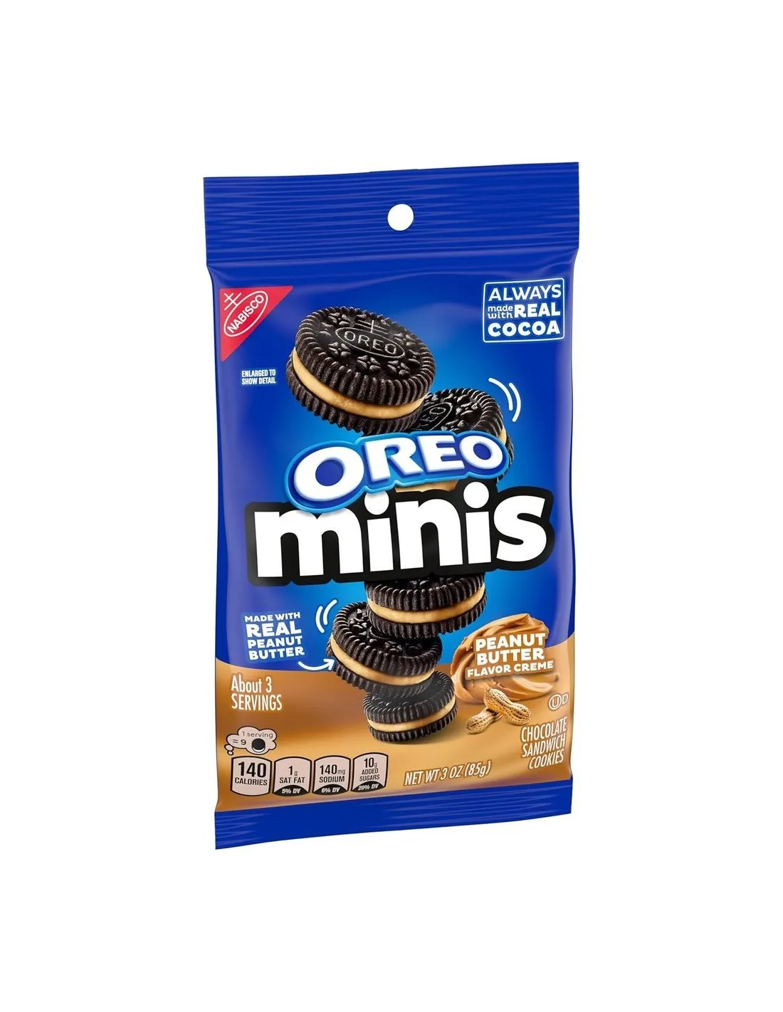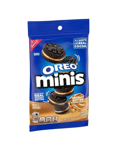 Déjate seducir por las Oreo Minis Peanut Butter , una versión innovadora de la icónica galleta Oreo, revisitada en formato “mini” con una rica y cremosa crema de mantequilla de maní.