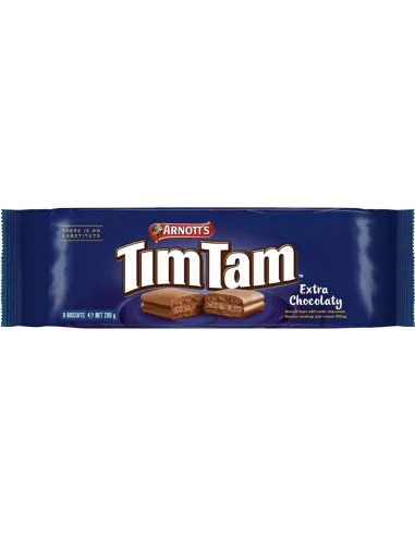 En Pop's America, nos encantan las galletas Tim Tam Extra Chocolatey por su textura ultra fundente, su sabor intenso y su generoso relleno de chocolate, que las convierten en la galleta perfecta para los verdaderos amantes del cacao.