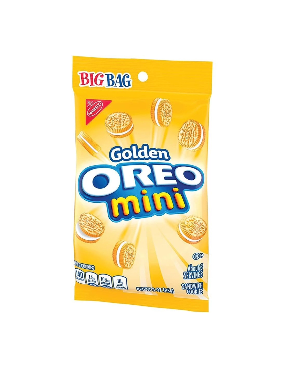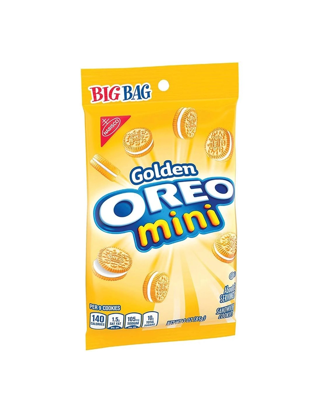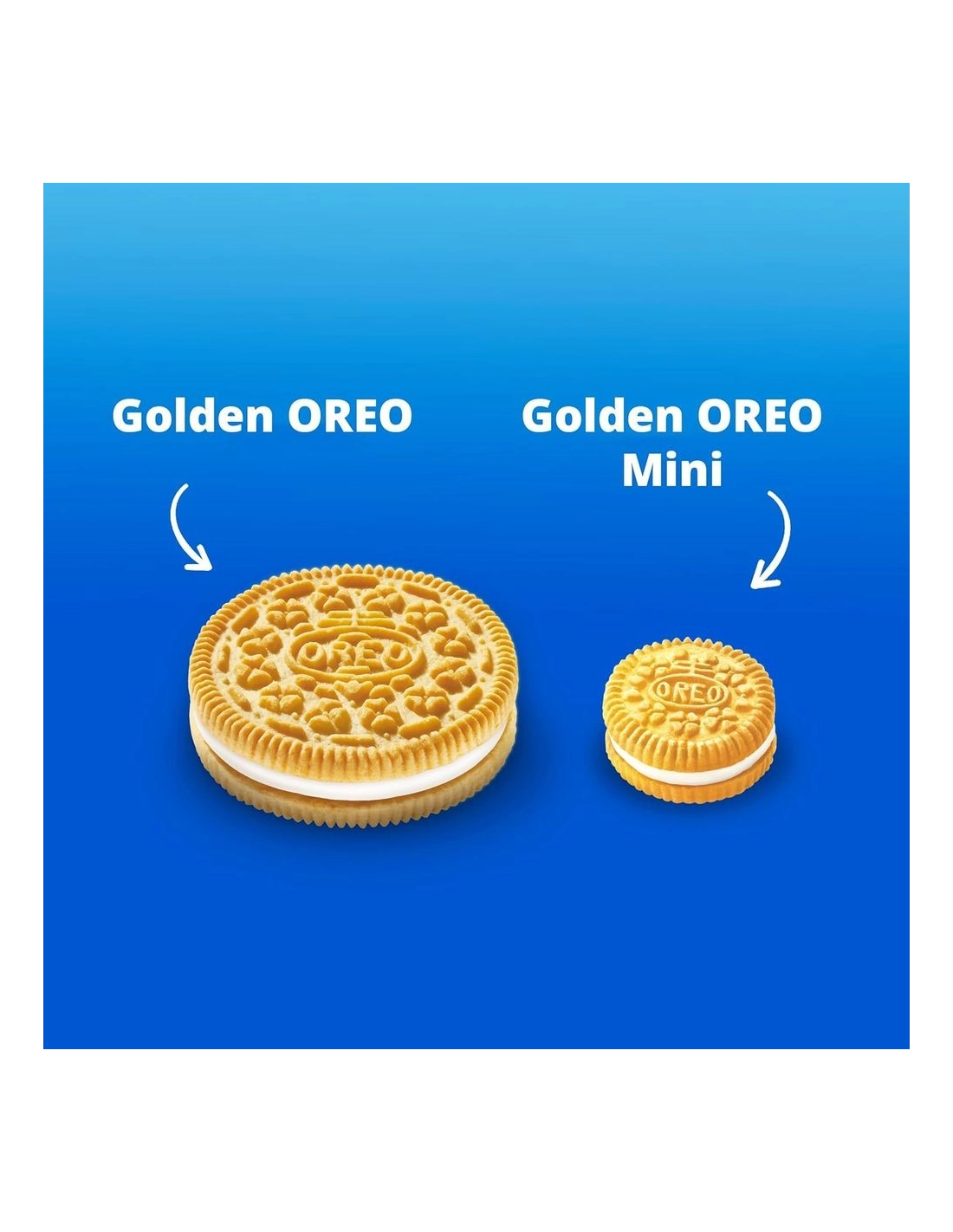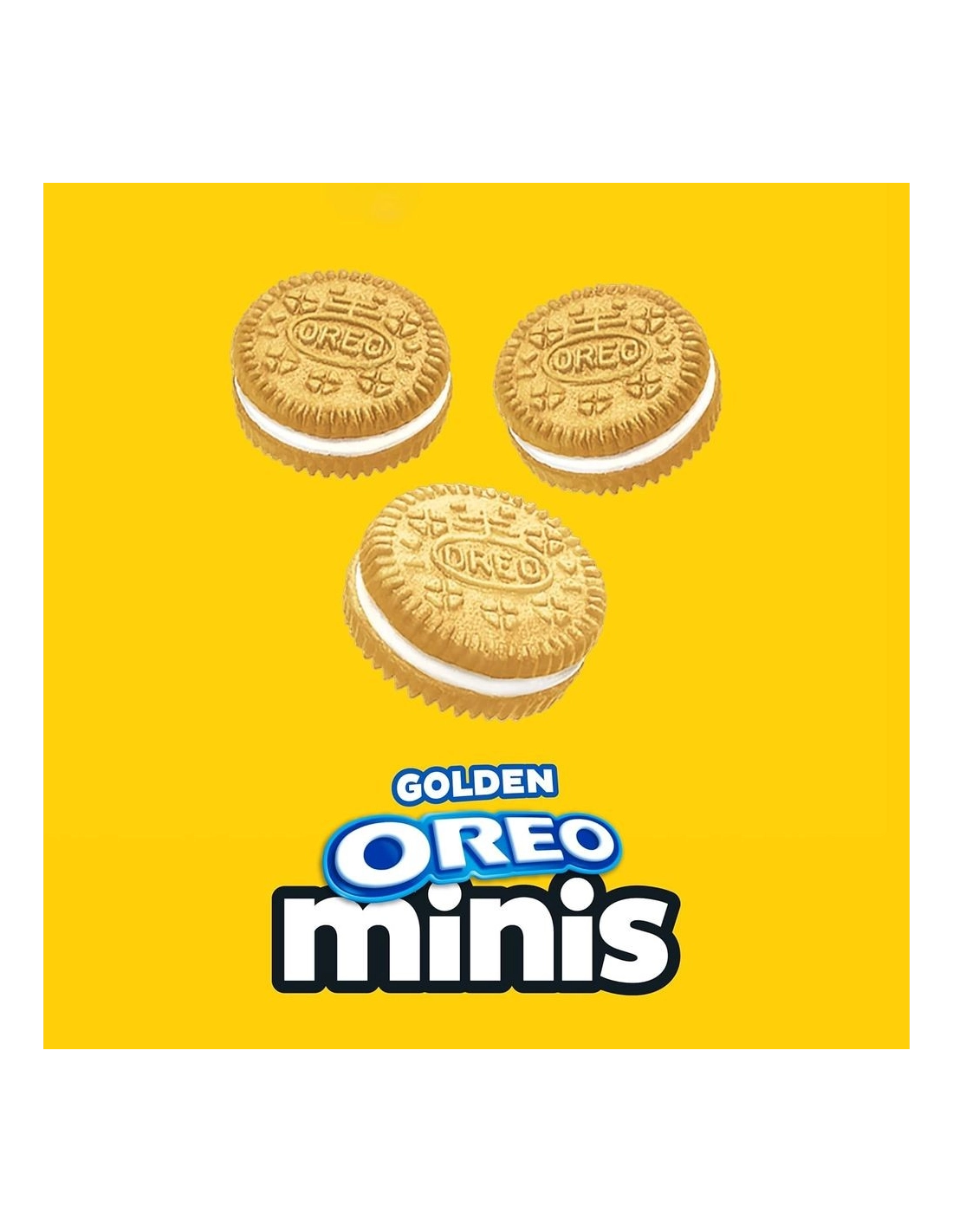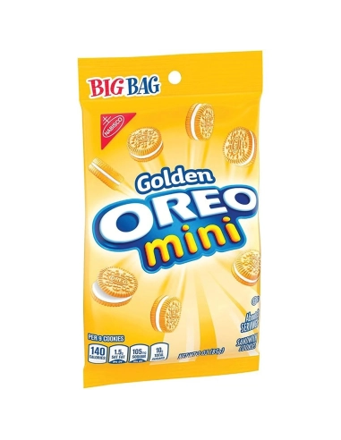 Descubre las Oreo Mini Golden , ¡la versión dorada en miniatura de la icónica galleta estadounidense! Estas pequeñas delicias gourmet conservan todo lo que hace a las Golden Oreos tan atractivas: dos obleas de vainilla delicadamente crujientes con un suave y dulce relleno de crema . Pero en un irresistible formato de bocado que invita a picar sin parar.