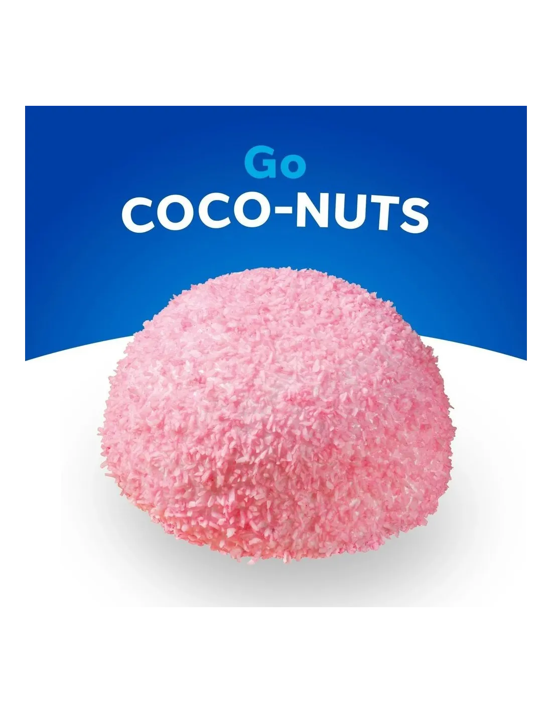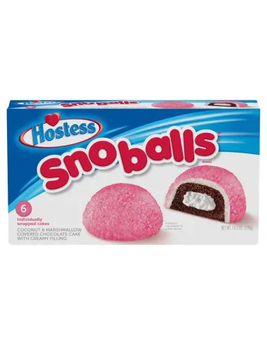 Los Snoballs de Coconut Marshmallow en la versión rosa de la marca Hostess son pequeños pasteles redondos de chocolate rellenos de crema de vainilla y completamente cubiertos de coco malvavisco.