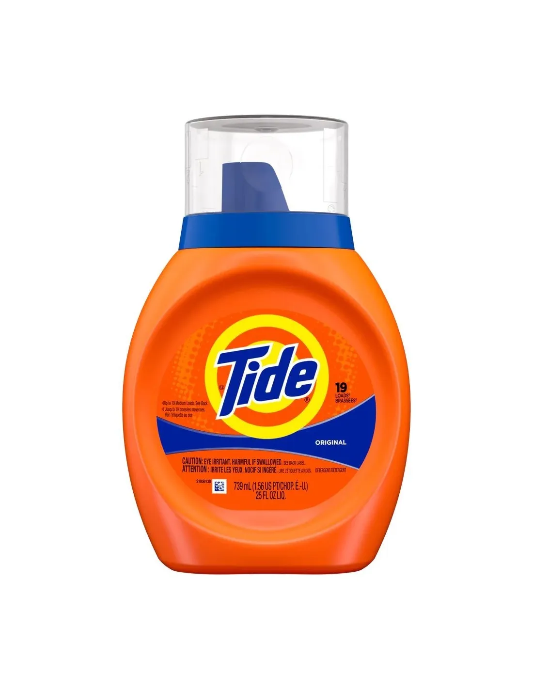 Tide Liquid Original ha sido el detergente líquido para ropa más vendido del mundo desde 1946. Su fórmula concentrada 6X Boosted Clean ofrece un poder de limpieza inigualable contra el 100% de las manchas más comunes, con 10 veces más agentes antigrasa que las marcas económicas. Práctico envase de 19 lavados , aroma Original para una frescura y limpieza que duran todo el día.